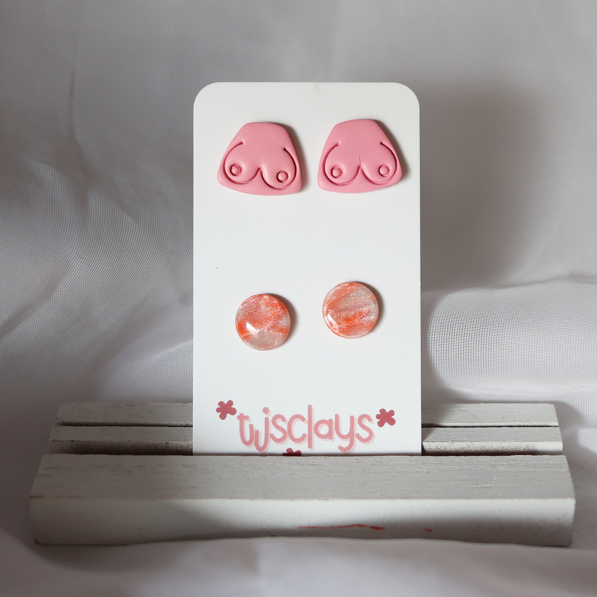 stud set: boobies + peach polka dots